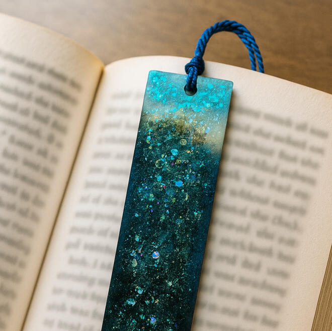 A handcrafted resin bookmark full of color, sparkle, and holiday joy. Finished with a bold green tassel, this festive piece adds a little magic to every page you read.$8